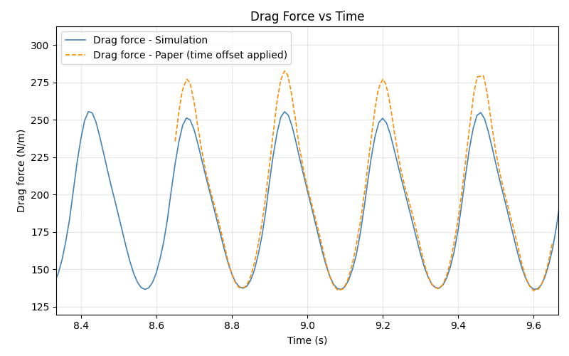 label="Drag force - Paper (time offset applied)",